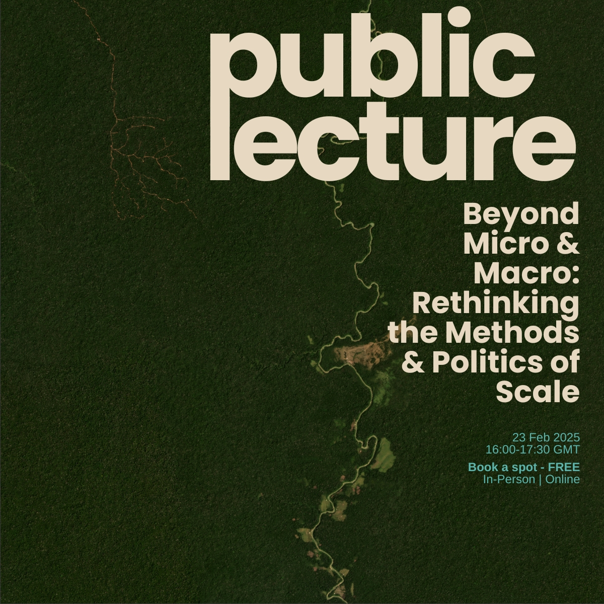 The talk, which is based around a series of “fireside” questions, will explore time and spatial scales, scaling solutions and methodologies, the frictions and exclusions generated by scalar logics, and the methodological and ethical stakes of working across scales.