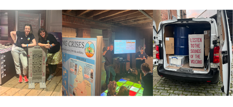 Bristol goes to the Manchester Science Festival in October 2024. As part of the 'Sensing Volcanoes' team a crew from Bristol travelled up to take part in our all singing, (some dancing), hearing and smelling volcano exhibit along with colleagues from Manchester, Oxford and UEA. The serious side to this display was a demonstration of the many ways in which we detect volcanic behaviour changes - vital in saving lives when volcano become active . At the end of the exhibit it was packed up and brought back to Bristol - where it is now available for local events!