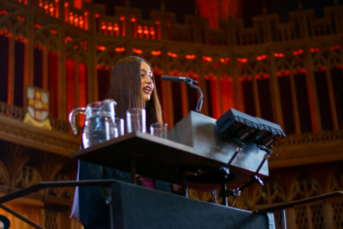 Gurvin Chopra, whose parents fled religious persecution in Afghanistan, made a speech to a crowd of around 1,000 graduating students and their loved ones, in which she spoke about what a “privilege it is to pursue an education”.