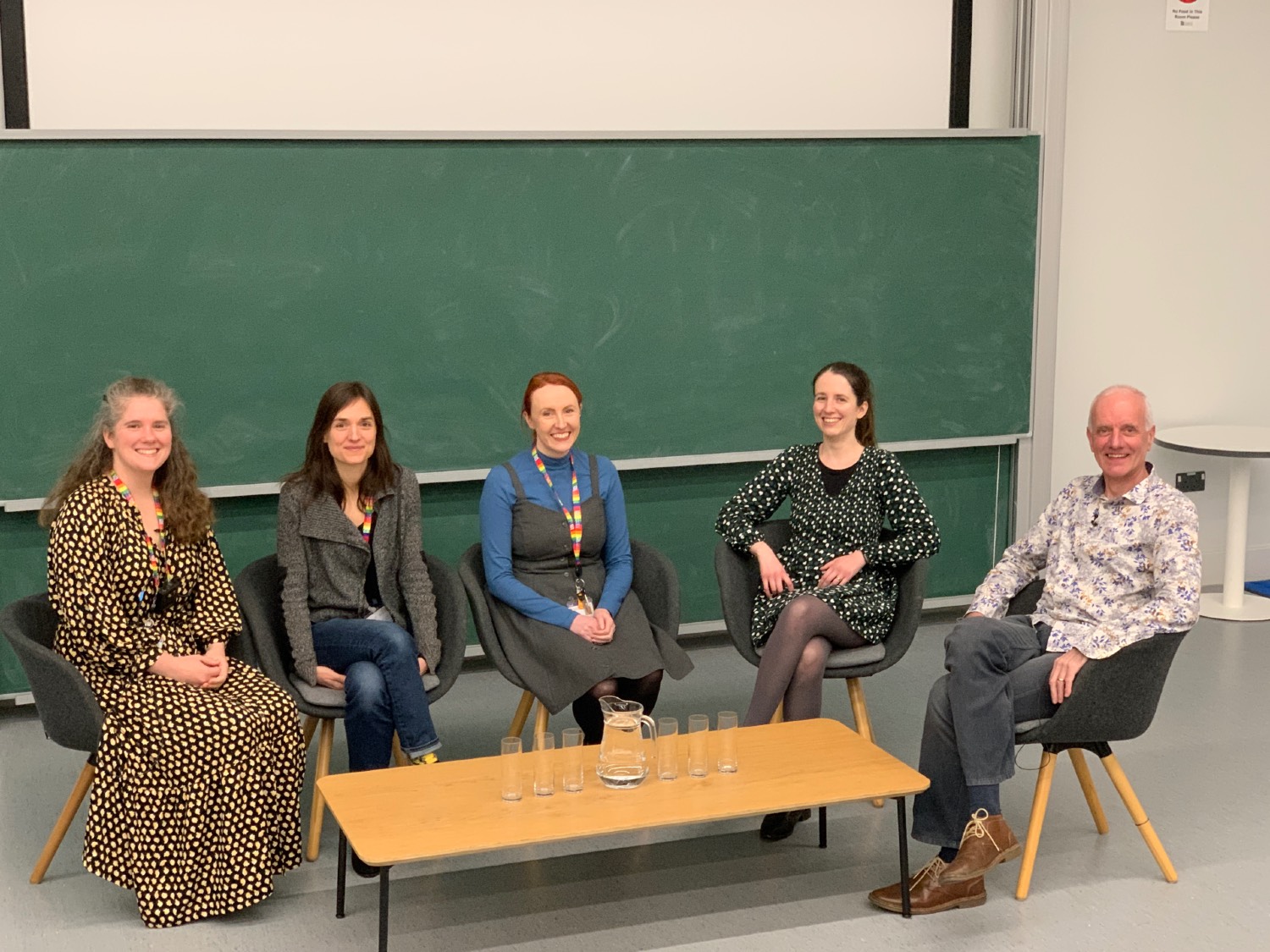 Dr. Unwin (Senior Lecturer) was then joined by Dr. Rachael Carey (Lecturer) , Dr. Celine Maistret (Royal Society Dorothy Hodgkin Fellow and Proleptic Senior Lecturer), Dr. Laura Monk (Royal Society Dorothy Hodgkin Fellow), for a panel discussion chaired by Prof Andrew Hogg on their careers, and what they love the best about maths — somehow the panellists also ended up sharing a lot about what about maths they find frustrating and boring, too! The evening ended with a lively pizza reception.
