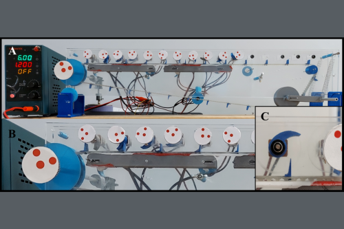To test this theory, the researchers built an experimental tabletop model using small electric motors arranged like real muscle proteins, in an actomyosin-like configuration.