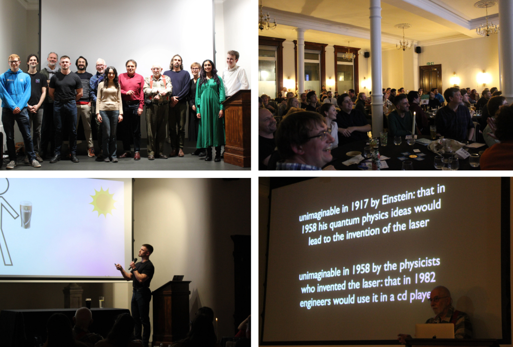 This was the second year of a sold-out Quantum Carousel, in which we saw 9 incredible performers from across academia and industry gather for a night of science communication. Our speakers were Dr Chris Stewart, Dr Felix Flicker, Sir Michael Berry, Eesa Ali, Sebastien Bisdee, Dr Maria Violaris, Dr Mike Shubrook, Professor John Rarity and Hugh Barrett. Performances ranged from quantum kung-fu and magic, to error correction through Lego.